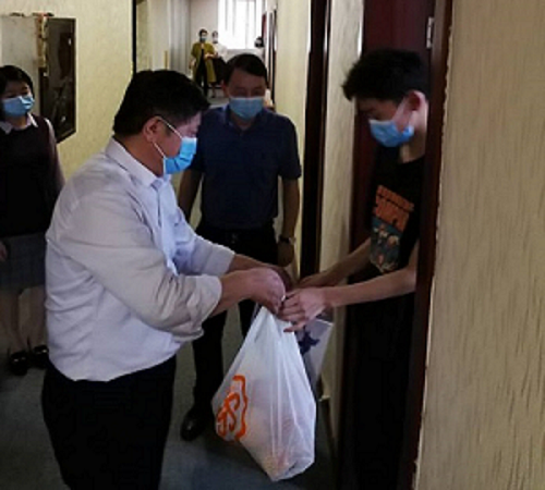 2020年5月13日下午,m88,m88.com党政领导班子前往沙坪坝校区培训中心,看望正在进行集中健康观察的湖北籍返校学生,给同学们送上了牛奶、水果等慰问品。