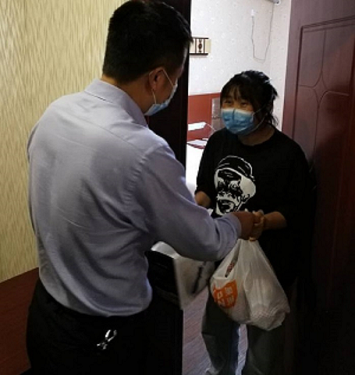 来到培训中心7楼集中健康观察区,学院领导与同学们亲切交流,详细询问同学们目前的身体状况,了解同学们返校后的生活需求。在交谈中,学院党总支胡忠建书记勉励同学们要坚定信心,保持乐观态度,适当锻炼,规律作息;李荣院长对值班老师的工作表示肯定,并强调对待疫情不能有懈怠情绪,要把疫情防控工作作为当前首要任务,在做好疫情防控工作的前提下,稳步推进学院各项工作平稳运行。