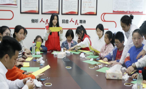 首先,学院团员骨干青年介绍了清明节的起源与风俗、诗词歌赋、故事人物等,并通过提问的方式增添了活动氛围。随后观看《小萝卜头》的视频过渡到重庆红岩精神,让社区青少年了解风雨如磐革命斗争的岁月,带着对先人和革命先辈的缅怀心情认识自身肩负的历史责任和时代使命,做好“红岩精神”的继承与发扬。为了让社区青少年表达对革命先烈的哀悼之情,继教团员骨干青年组织在场的社区青少年进行现场制作小白花,用充满敬仰之情的小白花来表达对革命先烈的哀悼。据悉,此次制作的小白花由璧山团区委统一收集前往白沈富烈士纪念馆凭吊。