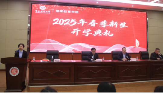 2025级新生代表凌珊珊同学在发言中表示虽肩负工作与家庭责任,仍选择重师追寻梦想,以校训“厚德、笃学、砺志、创新”为指引,在继续教育求学的路上,做时间的见证者,做实践的探索者,做重师精神的传承者,用碎片时间铸就知识光芒,将理论融入职场与生活,让学问滋养人生。