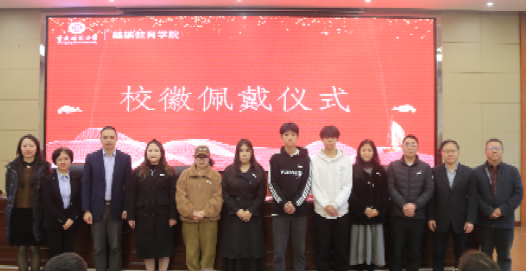 在温馨而隆重的校徽佩戴仪式上,学院领导和教师代表为新生们佩戴上了象征着明升体育88身份的校徽。