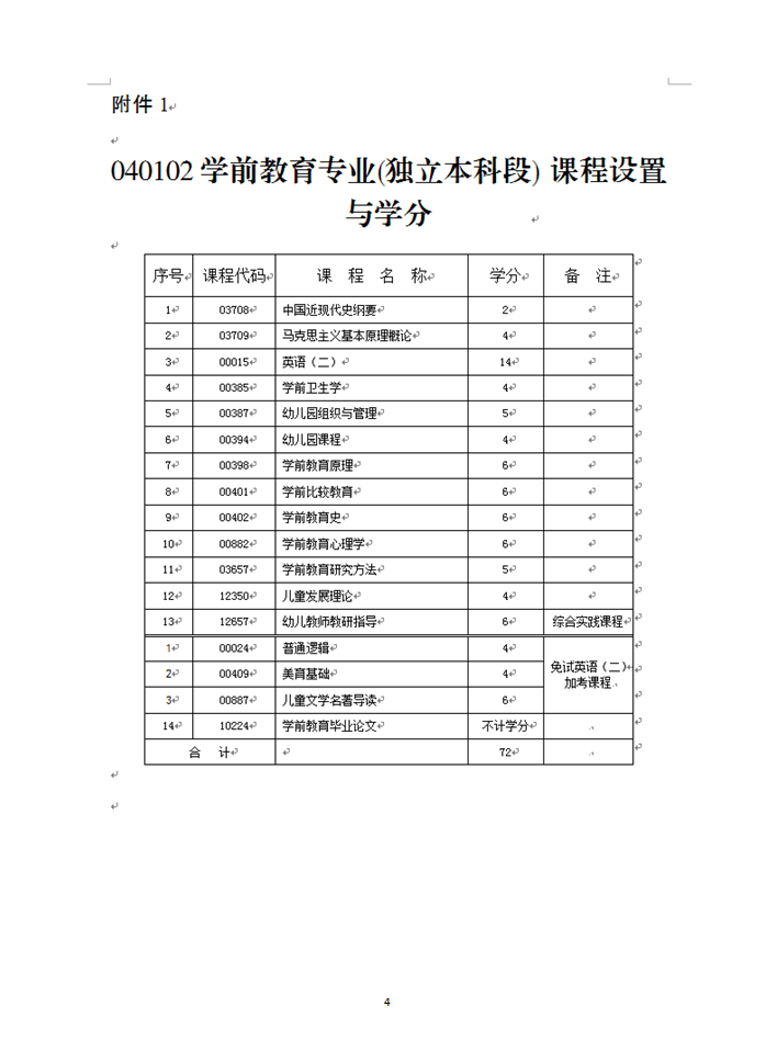 关于调整040102学前教育专业(独立本科)课程设置与学分的通知(渝教考发[2017]82号)
