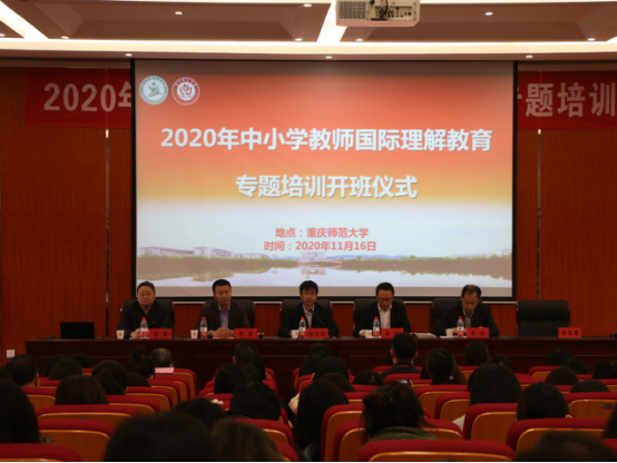 2020年11月16日上午,由重庆市教育委员会主办、明升体育88承办的“2020年中小学教师国际理解教育专题培训”开班仪式在我校沙坪坝校区第五教学楼成功举行。明升体育88党委常委、副校长陆远权、重庆市教育委员会国际处处长李斌、成都市教育对外交流中心主任李全、明升体育88m88,m88.com、国际汉语文化学院负责人及参加此次培训的170余名学员等出席了开班仪式。开班仪式由国际汉语文化学院院长雷勇主持。