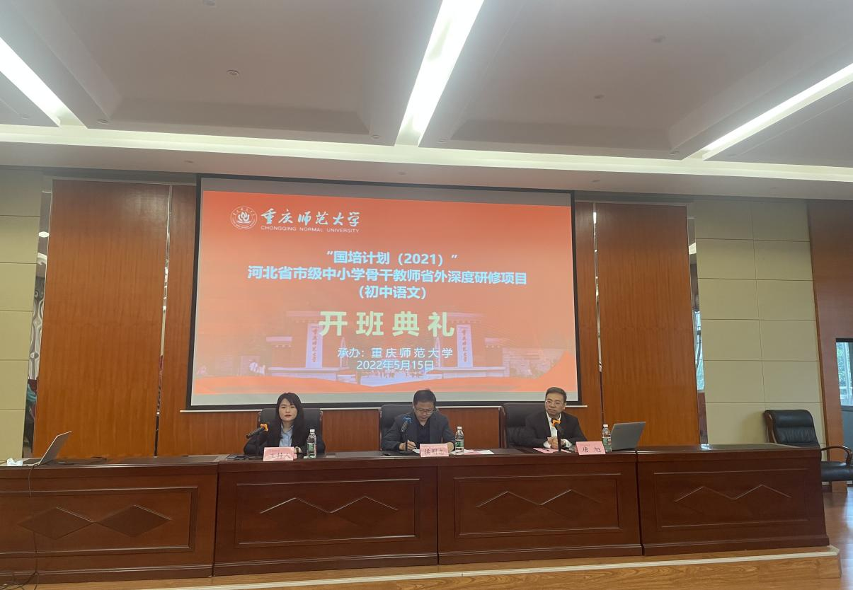 5月15日上午,“国培计划”河北省市级中小学骨干教师省外深度研修项目初中语文线上培训班在明升体育88举行开班典礼。明升体育88m88,m88.com党总支书记、副院长侯明志和项目首席专家明升体育88文学院教授唐旭老师在明升体育88(沙坪坝校区)5教学楼5401教室出席开班并讲话,全体学员参加了线上会议。