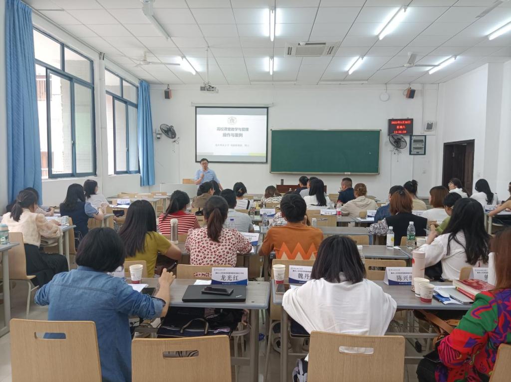 5月20日由重庆大学副教授陈圆、明升体育88教育科学学院教授刘建银进行专题教学。陈圆教授在BOPPPS 有效教学结构的授课中细致的讲解了导言、目标、前测、参与式学习、后测、总结六个教学环节,并与学员积极互动,及时解答学员疑惑。刘建银教授在高校课堂教学与管理方法:操作与案例讲座中,首先让学员分组进行讨论,再针对学员提出的问题做出解答,并进行理论教学。学员们积极发问,将自己平日工作中遇到的问题在课堂上进行讨论,大家畅所欲言,一起寻找方法解决。