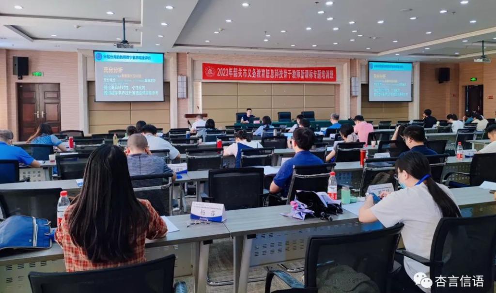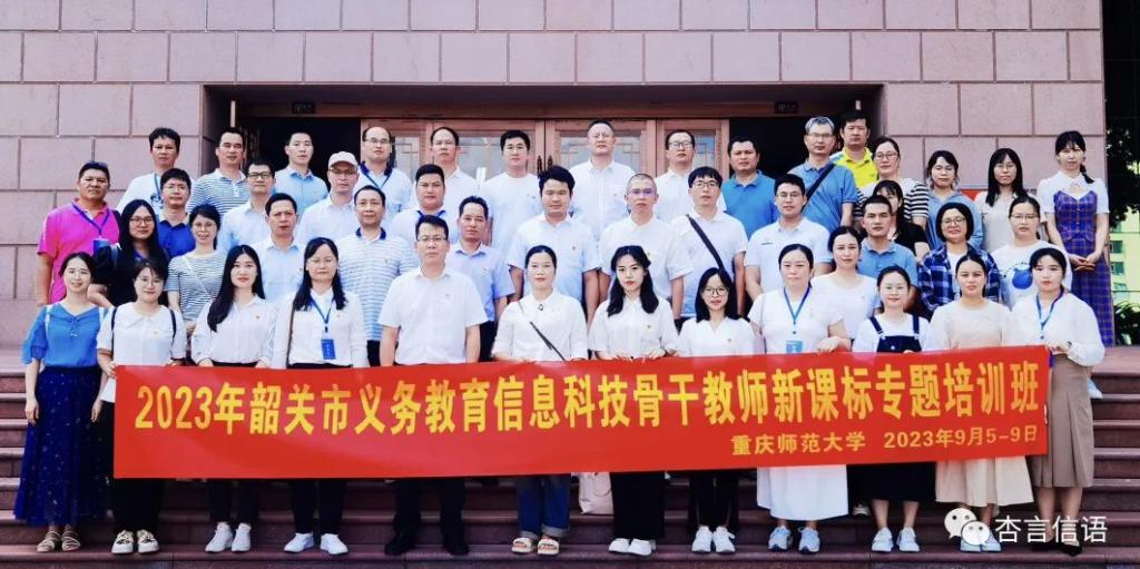 为打造一支师德高尚、业务精湛、理念创新、活力充沛的新型信息科技教师队伍,全面提升我市信息科技学科教育教学质量。在暮夏渐远,初秋来临的九月天里,在韶关市教育科学研究院办公室副主任、信息技术学科教研员杏建红的带领下,我市信息科技骨干教师及省级学科教研基地成员一行50人远赴明升体育88,进行为期5天的“2023年韶关市义务教育信息科技骨干教师新课标专题培训暨广东省小学信息技术学科教研基地研修”学习,全体信息科技骨干教师在学习中交流、反思、沉淀、提升。