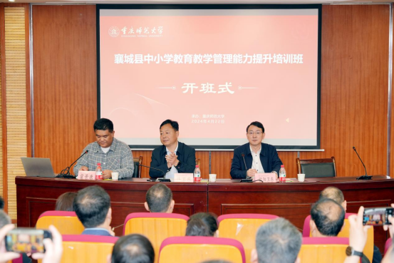 4月22日上午,由襄城县教育体育局主办,明升体育88承办的“襄城县中小学校长及业务骨干示范培训班”在我校沙坪坝校区第五教学楼5301教室举行。襄城县教育体育局党组书记、局长井卫东、襄城县教育体育局基础教育股负责人霍景康、明升体育88m88,m88.com党委副书记、纪委书记欧阳卫东以及来自襄城县61名中小学校长和业务骨干参加开班仪式,仪式由襄城县教育体育局基础教育股负责人霍景康主持。