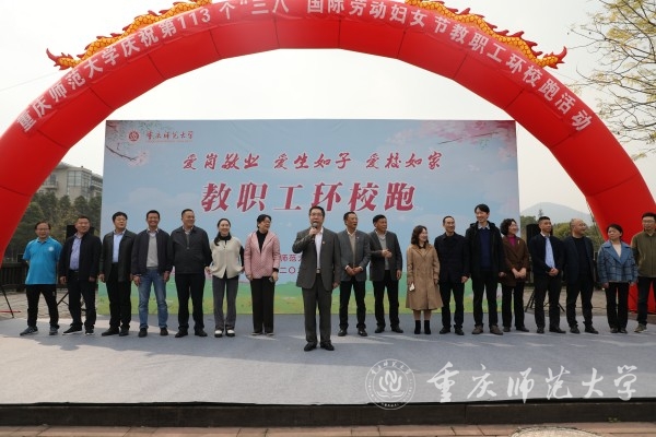 3月8日下午,为庆祝第113个“三八”国际劳动妇女节,以“爱岗敬业爱生如子爱校如家”为主题的教职工环校跑活动在我校大学城校区三春湖观景平台拉开序幕,校党委副书记、校长孟东方,校党委副书记陈志军出席活动,活动由校工会主席、教代会主任李川主持。22支来自各分工会、由男女教职工混合组成的队伍参加了此次比赛。