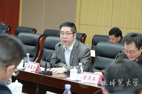 会议伊始,孟东方对伊犁师范大学一行表示真挚的欢迎,对伊犁师范大学长期以来对我校教学工作的关心和支持致以衷心的感谢。他指出,两校虽然校情不同,但有着高度相似的发展历史,对今后两校深化工作、协同发展的前景充满信心。孟东方简要介绍了我校的基本情况,重点阐述了我校在师资队伍、科学研究、科教设施、人才培养等方面的优势和成果,同时希望伊犁师范大学的领导及同仁可以为我校的学科建设、人才培养等方面提出宝贵建议。
