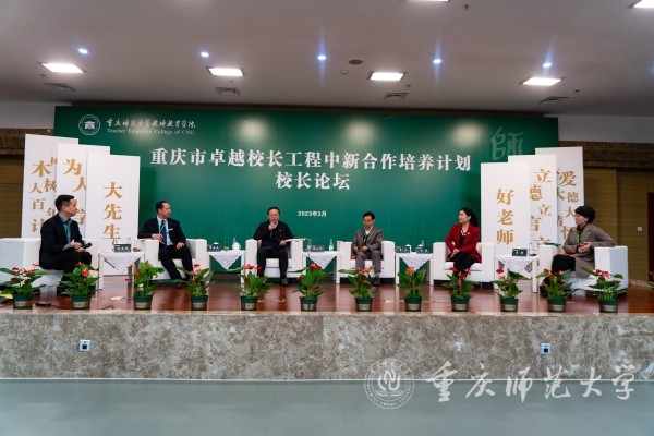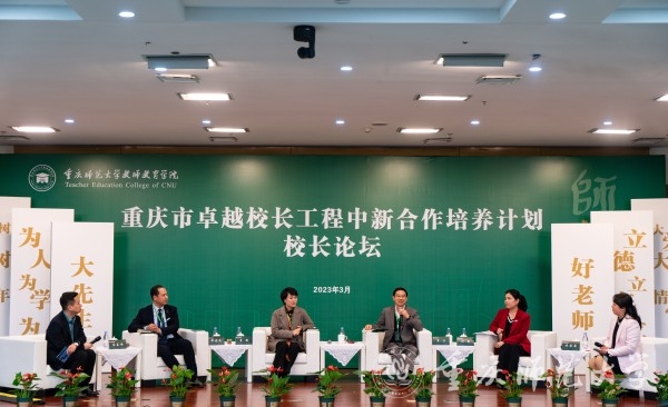 为了进一步总结提炼、交流展现卓越校长工程中新合作培养计划第五期学员的学习成果,研讨师范生人才培养与基础教育高质量发展,3月27日下午,2023年重庆市卓越校长工程中新合作培养计划校长论坛在我校大学城校区博雅楼504举行。我校党委常委、副校长孟小军出席论坛,我校教师教育学院主要负责人,中新班第五期、第六期全体学员,学校部分学科课程与教学论教师、部分附属学校校长参加。