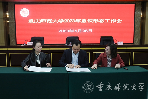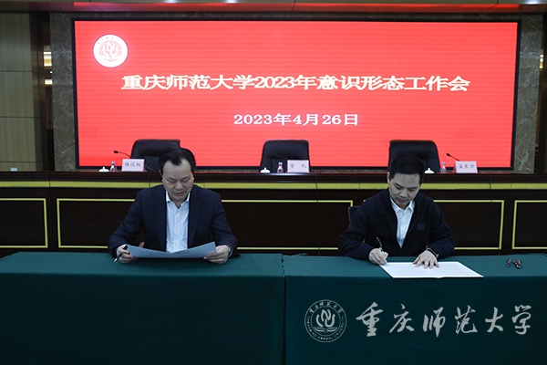 在会议现场,曾礼代表学校党委与二级单位代表党委学生工作部、经济与管理学院签订了意识形态工作责任书。