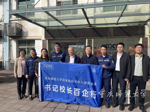 为深入贯彻党的二十大精神,落实党中央、国务院“稳就业、促就业”决策部署,促进2023届毕业生高质量充分就业,4月25日下午,学校党委常委、副校长杨如安带队赴长寿区晏家工业园开展“访企拓岗促就业”专项行动,走访调研重庆聚狮新材料科技有限公司和重庆卡贝乐化工有限公司。化学学院党政班子和部分教师代表陪同调研。