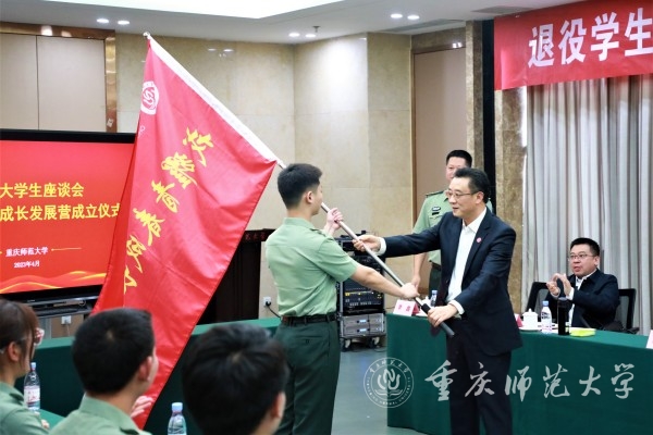 为进一步推动学校“立德树人”根本任务,贯彻落实“三全育人”基本理念,标榜模范,着力培养造就一批“退役不褪色”的优秀退役大学生, 4月27日下午,我校在博雅楼笃学厅举行退役学生分享交流会暨戎耀青春成长发展营成立仪式。学校党委副书记陈志军出席仪式,校人民武装部、党委学工部、招生就业处、校团委主要负责人及戎耀青春成长发展营学员参加会议。