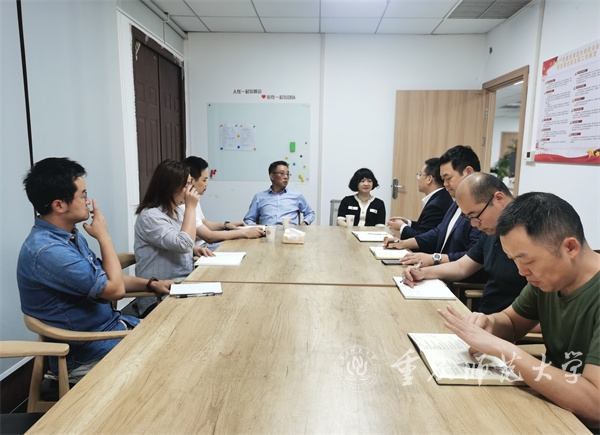 在心理健康教育与咨询中心,校领导仔细听取中心负责人对中心软硬件升级建设与当前教育咨询服务工作的情况汇报。对心理中心的建设发展情况予以了充分肯定,对中心长期高强度运转保障学生需求的全体专兼职教师表达了慰问和感谢。陈志军强调,当前心理育人工作面临更加复杂的形势和严峻挑战,我们的工作在守护学生健康成长和家庭幸福中有着非常重要的作用;心理中心要进一步整合资源,在全校相关职能部门的全力支持下,对标全国示范中心建设,加大师资力量和软硬件建设力度,为学校安全稳定和人才培养发挥积极作用。黄永宜指出,作为重庆高校首批市级示范中心,中心团队要持续深化认识,站在学校服务地方社会经济发展的角度,强化中心区域辐射功能和示范效应,要在充分满足全校学生需求基础上,重点对中小学心理健康教育师资培养培训增强指导与服务。