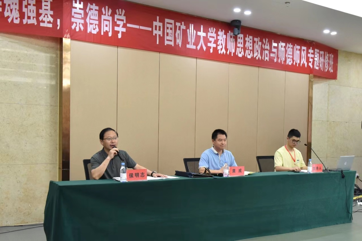 8月2日上午,由中国矿业大学主办、明升体育88承办的“中国矿业大学教师思想政治与师德师风专题研修班”开班典礼在我校大学城校区博雅楼502教室顺利举行。中国矿业大学党委教师工作部、人力资源部副部长龚成、明升体育88m88,m88.com党委书记、副院长侯明志、来自中国矿业大学的32名优秀教师参加开班典礼。