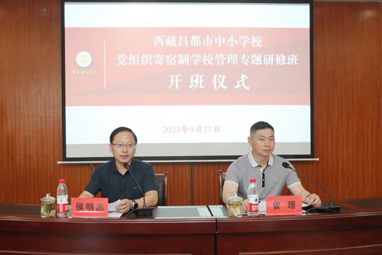 9月17日上午,由西藏昌都市教育局主办、明升体育88承办的“西藏昌都市中小学校党组织书记寄宿制管理专题研修班”开班典礼在我校沙坪坝校区五教楼5301教室顺利举行。西藏昌都市教育局党组副书记曾理、明升体育88m88,m88.com党委书记、副院长侯明志、来自昌都市57名各中小学校党委书记参加开班典礼。